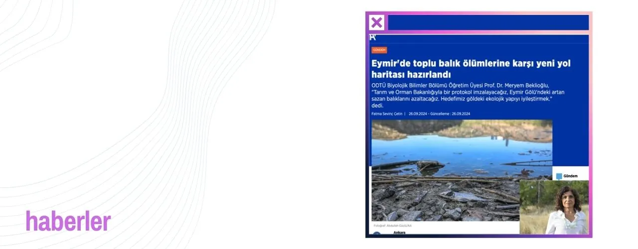 Haberler Prof. Dr. Meryem Beklioğlu ASLO 2025 Fellow olarak seçildi! EKOSAM Müdürümüz ve Limnoloji Laboratuvarı yürütücüsü Prof. Dr. Meryem Beklioğlu, sucul bilimlere ve özellikle limnoloji alanına yaptığı üstün bilimsel katkılar, liderlik ve hizmetleri nedeniyle ASLO… 12/02/2026 TÜBİTAK 1004 (SÜİT) Projesi Eymir Gölü Gözlem Alanı kurulumu tamamlandı. 11/12/2025 tümünü gör Duyurular TÜBİTAK 1001: TuzluSıcakÖtrofik ODTÜ Biyolojik Bilimler Bölümü öğretim üyesi Prof. Dr. Meryem Beklioğlu'nun yürütücülüğünü üstlendiği; göl ekosistemlerinde tuzluluk, ısınma ve ötrofikasyonun çoklu etkilerini araştırmayı hedefleyen… 11/12/2025 Learn & Connect 5:40 Lecture Series Prof. Dr Meryem Beklioğlu ODTÜ Learn & Connect: 5.40 Lecture Series kapsamında düzenlenen Prof. Dr. Meryem Beklioğlu tarafından yapılan "Arazi ve Su Kullanımı ile İklim Değişikliğinin Göl Ekosistemlerine Etkileri"… 11/12/2025 Learn & Connect: Prof. Meryem Beklioglu Learn & Connect: Prof. Meryem Beklioglu "Learn & Connect: 5.40 Lecture Series" etkinliğinin on ikincisini, 23 Ekim 2025 Perşembe günü saat 17.40'ta Kültür ve Kongre Merkezi Kemal Kurdaş… 11/12/2025 tümünü gör